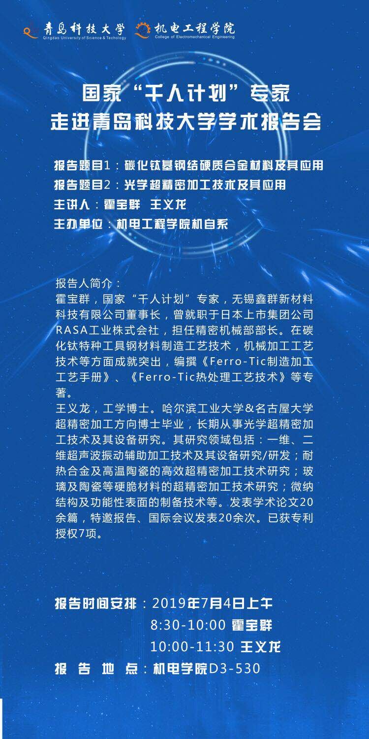 机电工程学院学术报告会:专家走进青岛科技大学学术报告会