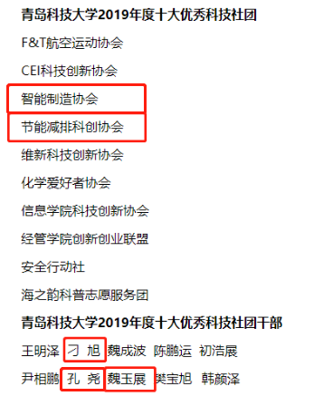6月2日,青岛科技大学2019年度十大优秀科技社团和优秀科技社团干部名单公示,beat365官方网站指导的社团节能减排科创协会获评“十大优秀科技社团”,刁旭、魏玉展同学获评“十大优秀科技社团干部”,并推荐刁旭同学参评山东省优秀科技社团干部。高密校区机电系智能制造协会、孔尧同时入选。