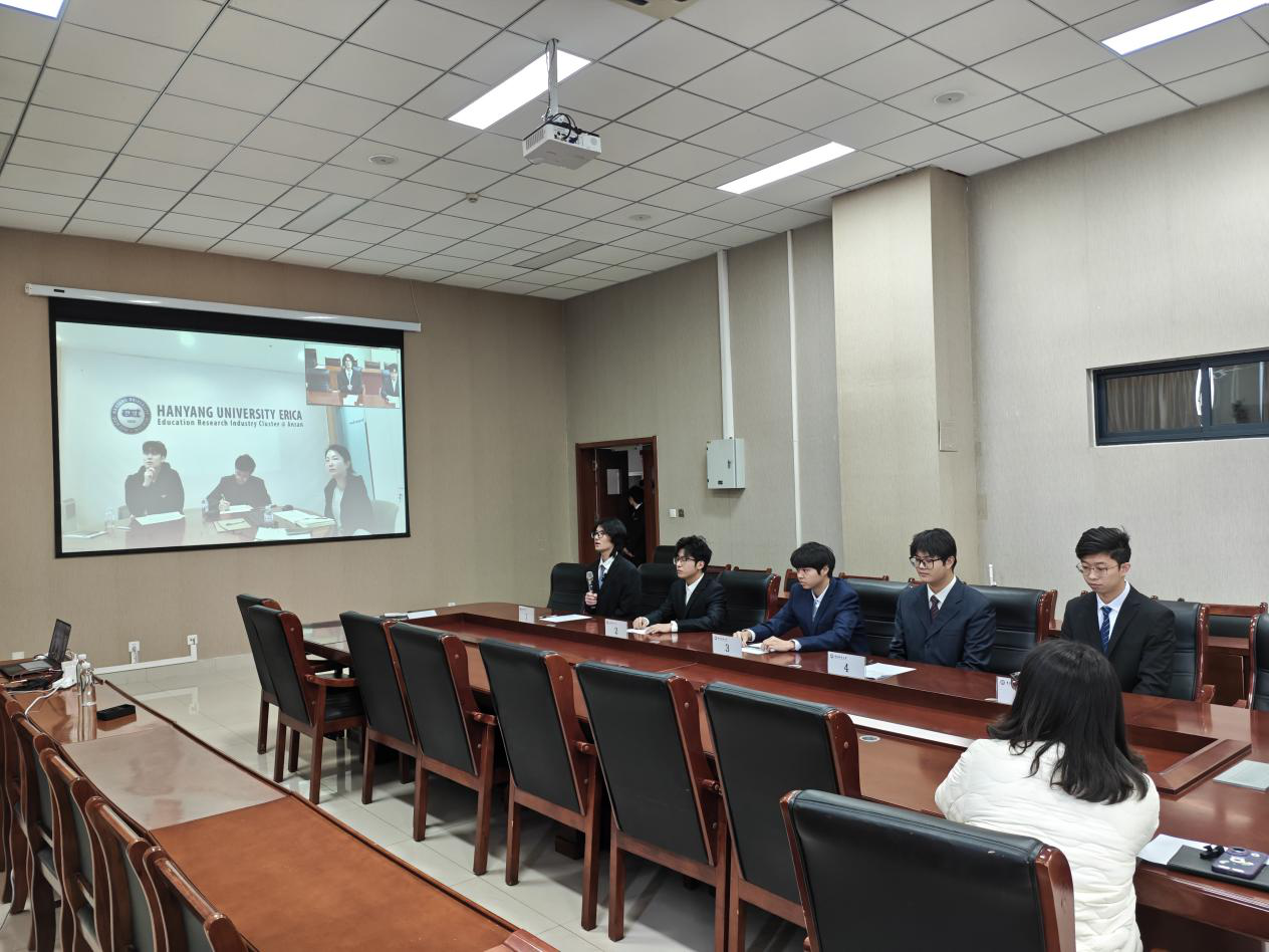2025年1 月 16 日,韩国汉阳大学顺利开展2023级青岛科技大学机电工程学院中韩合作办学出国面试选拔。本次面试选拔依托线上会议在青岛科技大学机电工程学院518 会议室进行。汉阳大学ERICA校区教授Keun Ryu、汉阳大学ERICA校区教授Andrew Choi、国际处项目负责人朴美颖负责面试评审,学院25 名学生参与本次面试选拔。