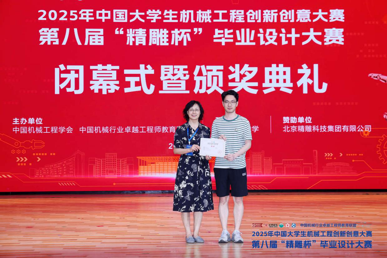 6月2日,中国大学生机械工程创新创意大赛暨第八届“精雕杯”毕业设计大赛决赛在广东工业大学举行。我校机电工程学院1个项目进入全国总决赛。经过激烈角逐,机电工程学院赵海霞、青岛华晟智能装备股份有限公司工程师赵先佑共同指导、机械211班徐正本同学的“一种仿虾体机械手的设计”毕业设计作品获得铜奖,荣获学校在该项赛事中的最好成绩。学校参赛作品充分体现了高校人才培养与产业需求的深度融合,培养学生解决复杂工程问题的能力。