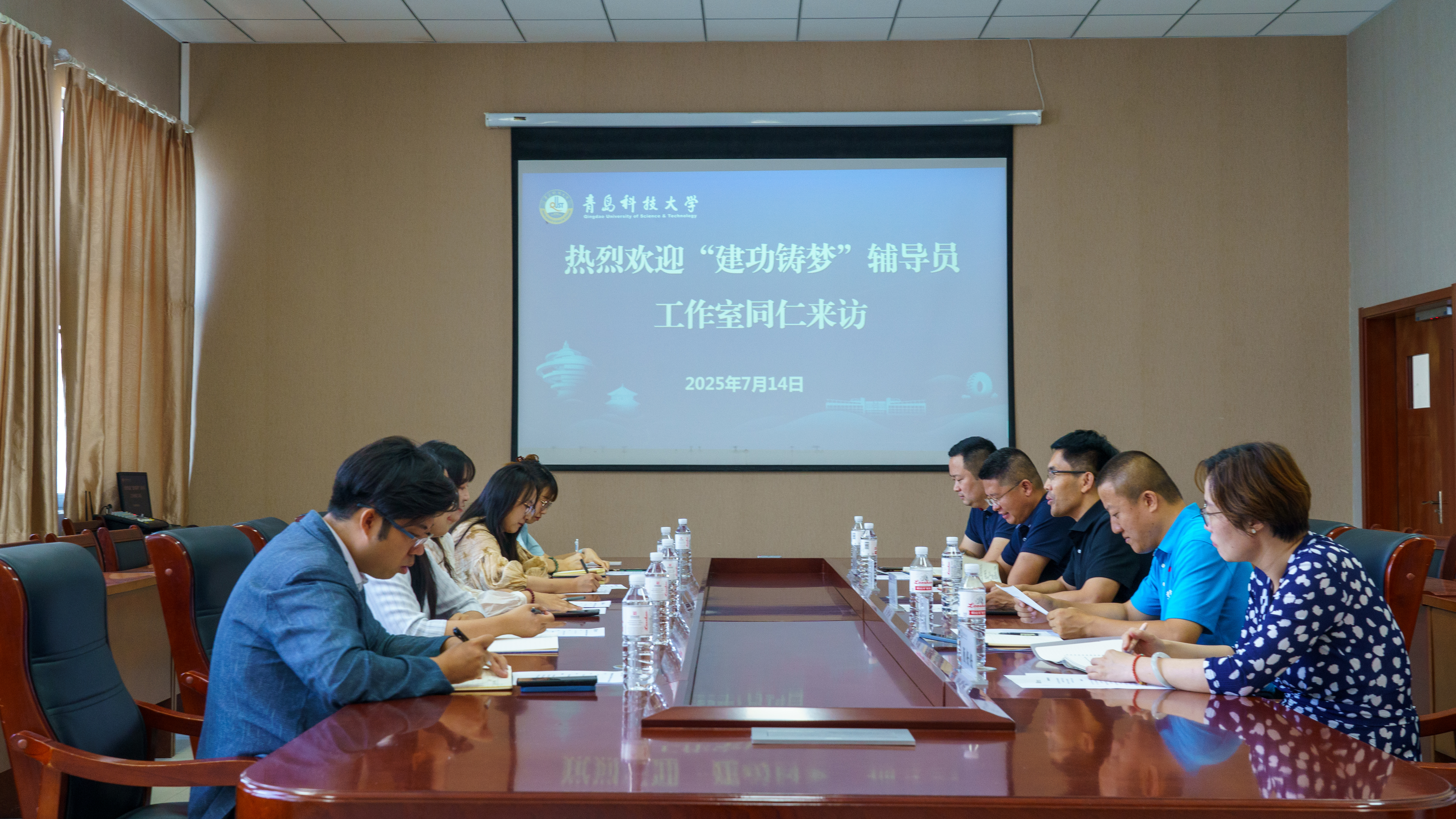 7月14日,首批全国高校辅导员名师工作室“建功铸梦”辅导员工作室负责人、青海建筑职业技术学院建筑与水利工程学院专职副书记张志萱、辅导员都青雯来校交流。期间,高校辅导员工作室经验交流座谈会在机电工程学院518会议室召开。党委学生工作部(处)副部(处)长兼武装部副部长李春家、机电工程学院党委副书记兼副院长杨小明(一站式社区辅导员工作室主持人)、数据科学学院党总支副书记兼副院长顾姗姗(“职业生涯规划咨询服务”项目负责人)、传媒学院党委副书记兼院长刘海波(“启航未来”生涯规划发展教育项目负责人)、机电工程学院辅导员崔瑛(“铸就心灵守护者”揭榜挂帅项目负责人)及红润初心工作室骨干成员参加会议。会议由党委宣传部副部长、首批全国高校辅导员名师工作室“红润初心”工作室负责人贾可好主持。