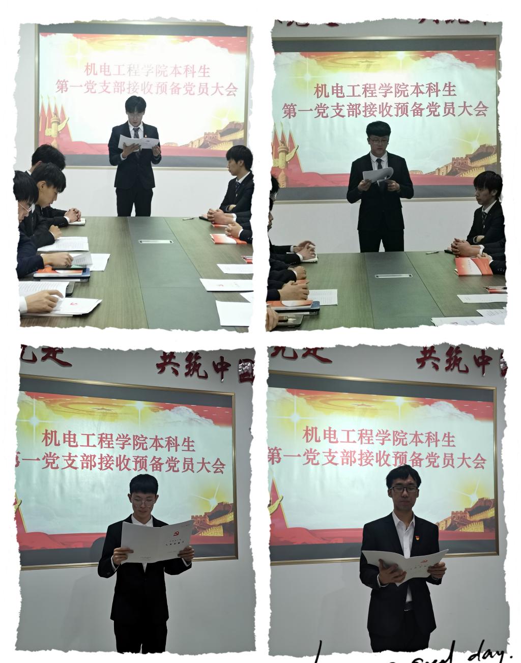 11月25日,beat365官方网站本科生第一党支部在机电529先后三次召开接收预备党员大会,会议吸纳了张致远等14名同志加入党组织。会议由支部书记于超主持,全体党员参加。