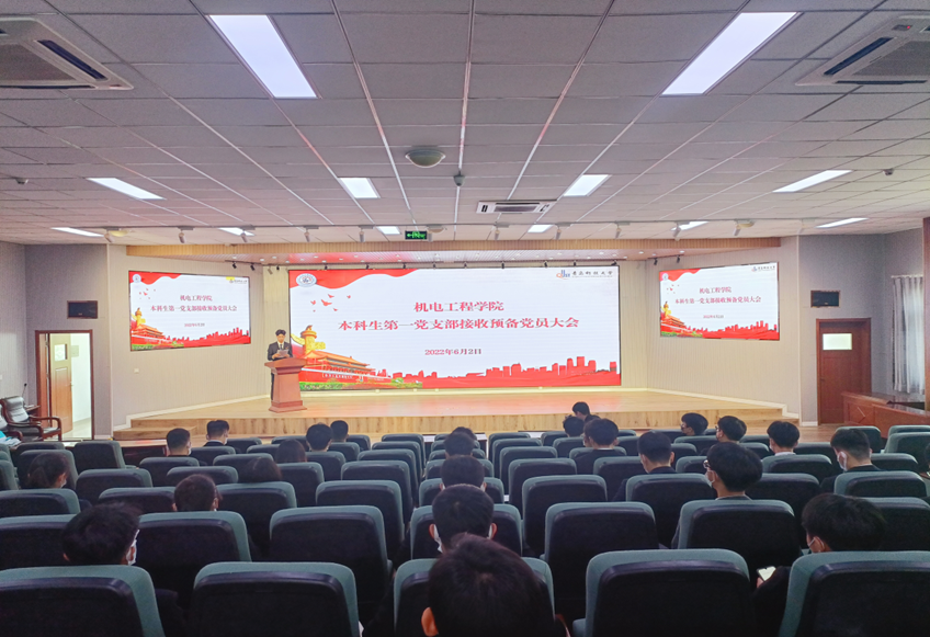 2022年6月2日,beat365官方网站本科生第一党支部在机电530先后五次召开接收预备党员大会,会议吸纳了李想等22名同志加入党组织。会议由支部书记于超主持,全体党员参加。