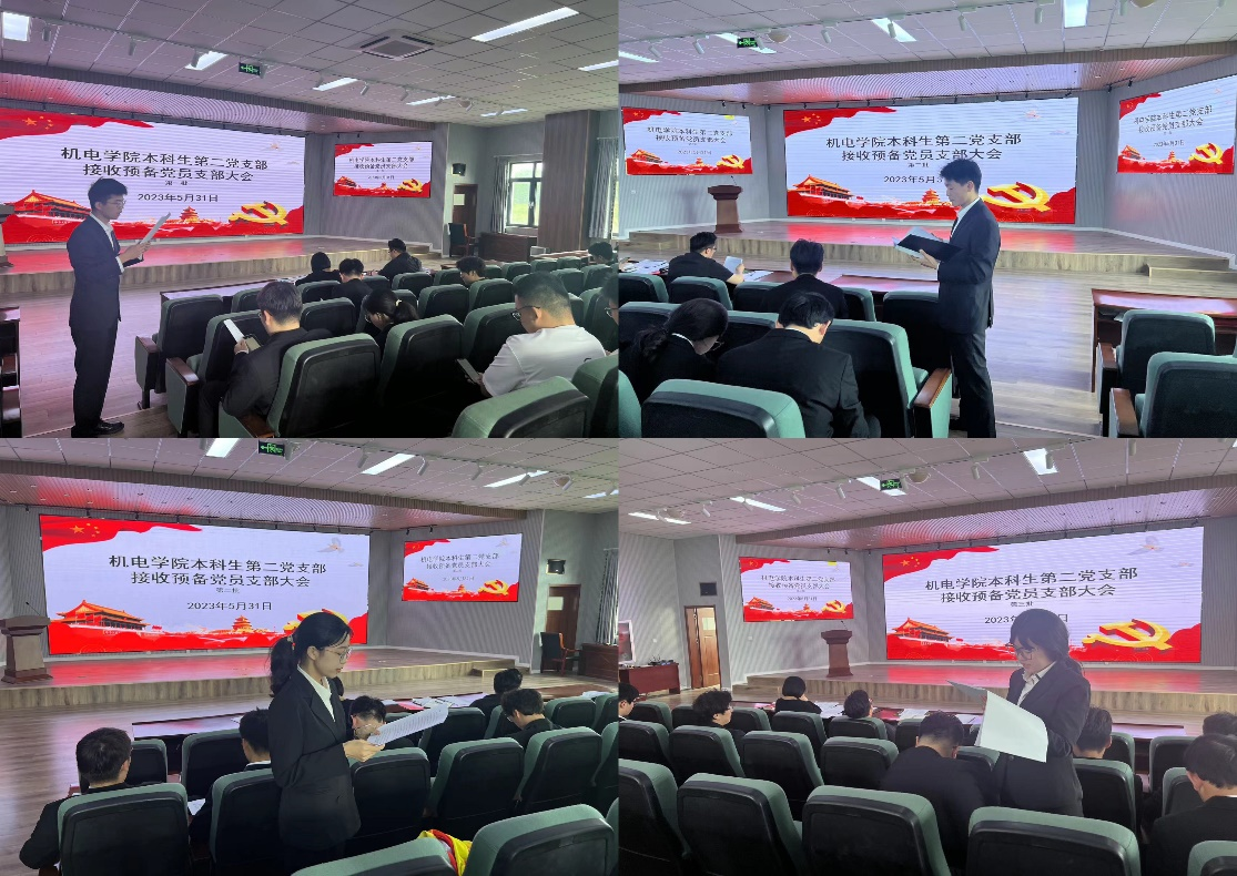 为了深入学习贯彻习近平新时代中国特色社会主义思想和党的二十大精神主题教育,5月31日在机电楼530会议室,beat365官方网站本科生第二党支部召开了接收预备党员大会,会议由支部书记王娟娟主持,全体党员参加此次会议。