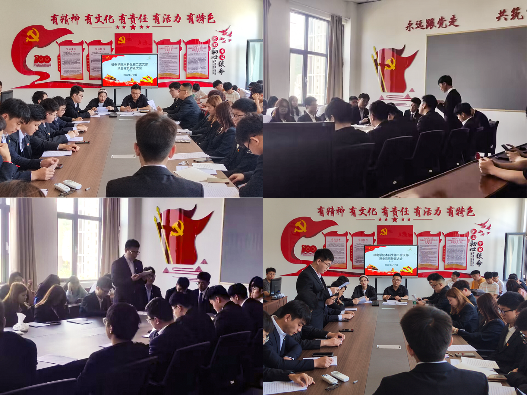 此次会议严格按照党组织预备党员转正规程,党支部组织委员郭佩佩首先介绍了预备党员转正程序,19名转正党员就预备期期间的工作、学习、思想三个方面作了汇报,向党组织提出转正申请。与会党员代表师生真实表达了各位预备党员在预备期的表现情况,反映了转正党员在支部各方面的表现。