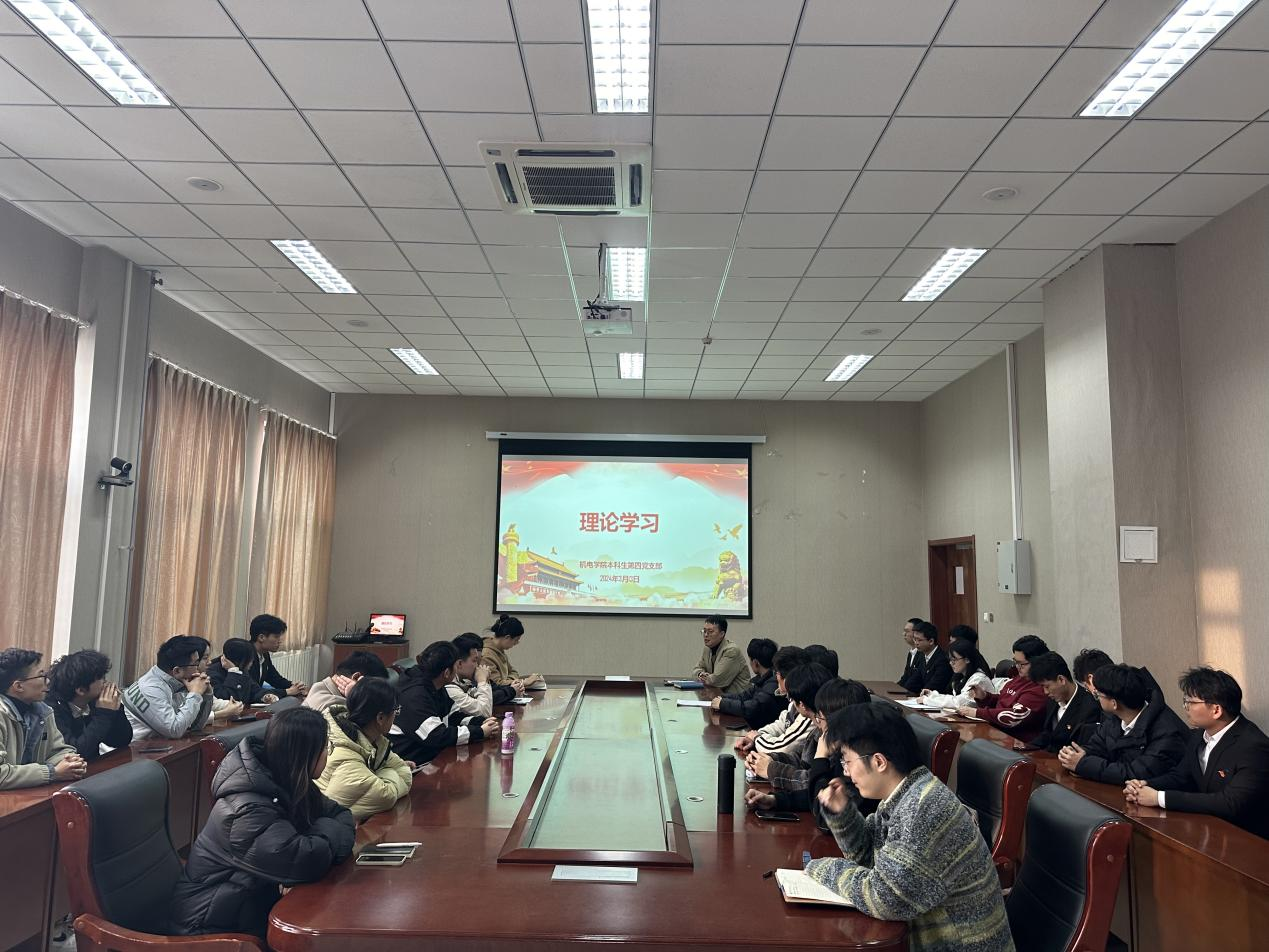 为深入学习贯彻习近平新时代中国特色社会主义思想,进一步增强学生党员的政治自觉、思想自觉、行动自觉,3月13日,机电工程学院本科生第四党支部于召开集中理论学习会。会议由党支部书记邢坤主持,本科生第四党支部全体党员参会。