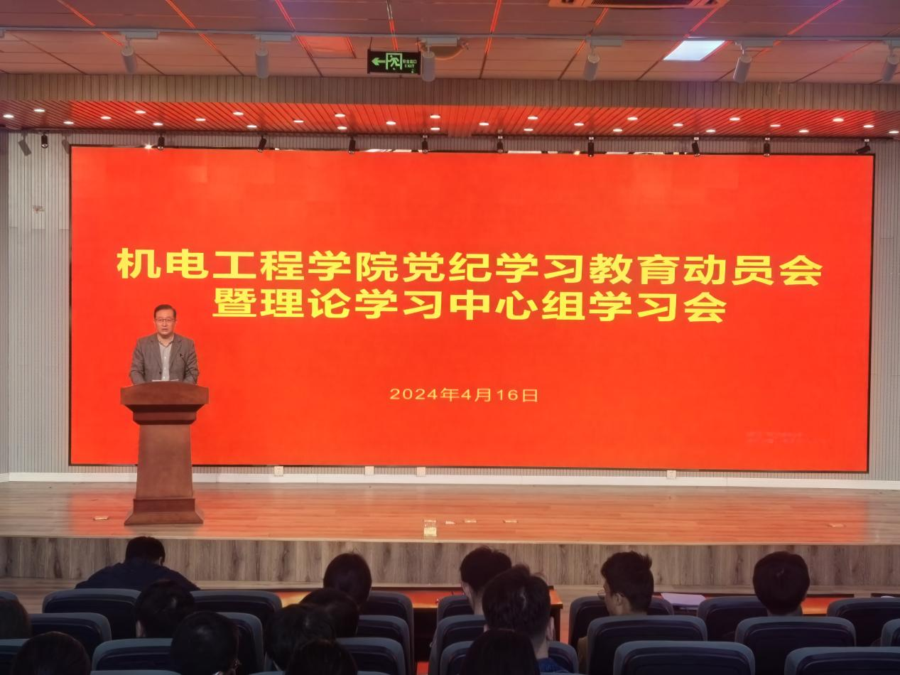 4月16日下午,机电工程学院在学院530会议室召开党纪学习教育动员部署会暨理论学习中心组学习会,传达学习习近平总书记关于开展党纪学习教育的重要讲话和重要指示精神以及上级会议、文件精神,对学院党纪学习教育进行动员部署。学院党委书记作动员讲话,学院领导班子成员、全体教职工党员、学生党员代表参会。