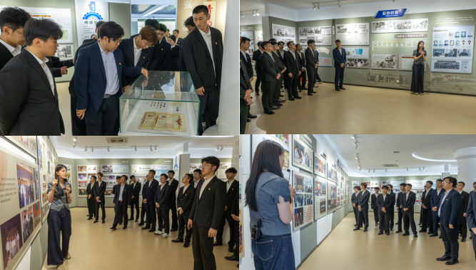 校史馆共分为“序厅”、“峥嵘岁月”、“厚积薄发”、“盛世华章”、“美好明天”五个展厅,全面真实地再现了青岛科技大学风雨兼程七十余载艰苦奋斗、自强不息的办学历程。在讲解员的带领下,机电工程学院本科生第一党支部党员漫步历史长廊,聆听母校声音,感悟科大精神。校史馆中陈列的珍贵照片和历史文献,生动展现了我校丰厚的文化底蕴,记录着青岛科技大学经历百年风雨的辉煌历程,书写着一代代师生砥砺奋进的光辉事迹。