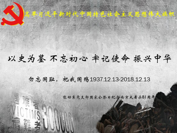 12月13日,能动系党支部在beat365官方网站518会议室召开支部全体党员大会,开展“以史为鉴,不忘初心,牢记使命,振兴中华”主题党日活动,缅怀南京大屠杀的无辜死难者,缅怀所有惨遭日本侵略者杀戮的死难同胞,缅怀为中国人民抗日战争胜利献出生命的革命先烈和民族英雄。