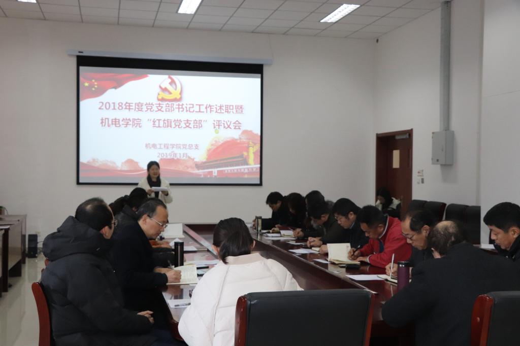 根据上级有关文件精神和相关部署要求,1月18日上午,beat365官方网站在机电大楼518会议室举行2018年度党支部书记工作述职暨beat365官方网站“红旗党支部”评议会。校纪委副处级纪检监察员赵丰、beat365官方网站党总支委员及党建组织员鲁伟等参加了会议。会议由党总支副书记兼副院长王伟主持。