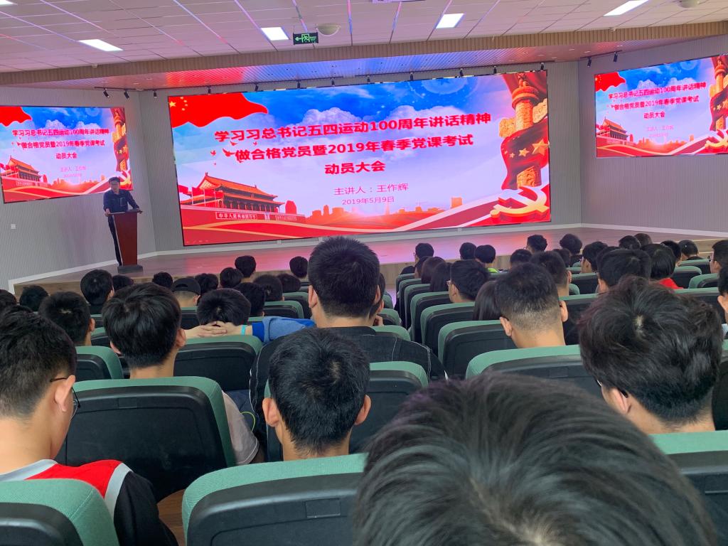 为进一步深入学习贯彻习近平总书记纪念五四运动100周年大会重要讲话精神,激励引导学子争做合格党员,弘扬五四精神。5月9日中午,beat365官方网站举行学习习近平总书记五四运动100周年讲话精神做合格党员暨2019年春季党课考试动员大会。院分团委书记王作辉主持会议并讲话,2019年春季入党积极分子和发展对象参加了会议。