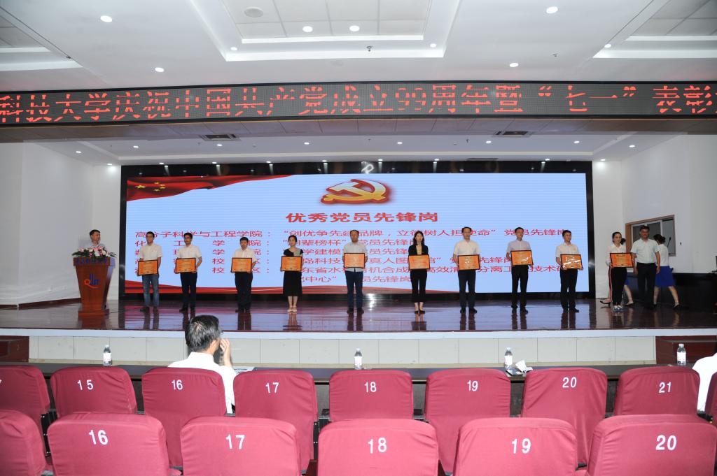在隆重庆祝中国共产党成立99周年之际,为进一步弘扬抗疫精神,增强基层党组织凝聚力、战斗力、创造力,强化党员意识,表彰先进、树立典型,7月1日,青岛科技大学庆祝中国共产党成立99周年暨“七一”表彰大会于崂山区第二报告厅隆重召开。校领导、院级党组织书记、副书记,分团委书记,党支部书记代表,党员代表,学生入党积极分子代表参与会议。