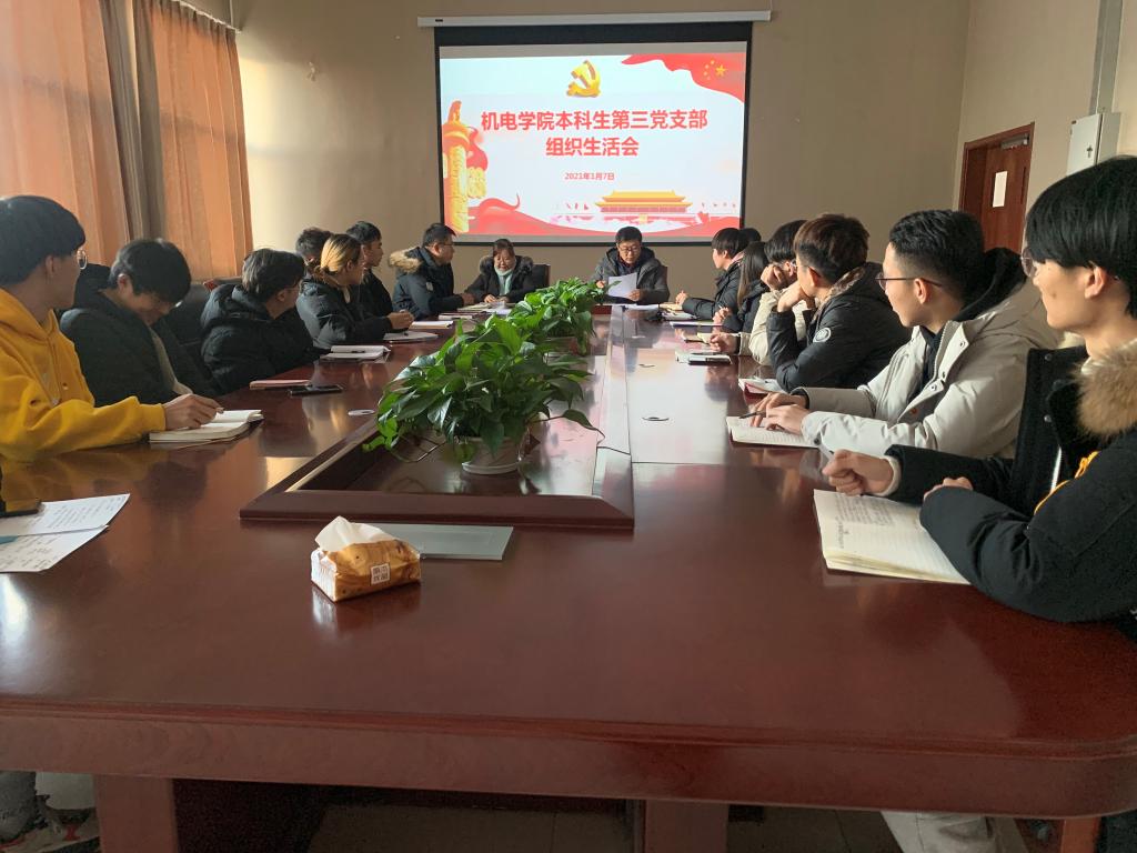 为落实学校党委组织部《关于召开基层党支部组织生活会及开展民主评议党员工作的通知》要求,2021年1月7日下午,beat365官方网站本科生第三党支部在机电楼518会议室召开了2020年度组织生活会。beat365官方网站党委委员付平老师对会议进行了点评,会议由支部书记王作辉主持。