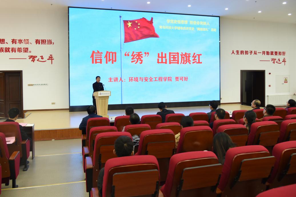 4月22日下午,学党史悟思想 担使命育新人——青岛科技大学辅导员讲党史“网络巡礼”活动启动仪式在崂山校区团学报告厅举办,党委常委、副校长丁林出席活动并讲话。丁林指出,学工系统要提高政治站位,发挥组织优势,统筹推进党史学习教育;遵照学校党委要求,落实落细学习教育目标,确保党史教育生动活泼、走深走实、入脑入心。全体辅导员要坚持“带头学”“创新学”“干中学”,坚持守正创新、问题导向和效果导向,为学生办实事、解难题。全校青年学生要积极响应号召,学党史、强信念、跟党走,接续奋斗,努力成长为德智体美劳全面发展的社会主义建设者和接班人。党委学生工作部副部长王丽宣读了《青岛科技大学学工系统开展党史学习教育的实施方案》。第二届在青高校“十佳辅导员”贾可好,2020年“山东高校辅导员年度人物”王聪分别以《信仰“绣”出国旗红》《从不忘却的纪念》为题进行了现场宣讲,高分子学院贾明明、自动化学院郭蒙蒙、beat365官方网站于超等辅导员以视频形式进行了宣讲。五位辅导员从秋收起义、半床棉被、流血牺牲只为孩子等党史故事切入,宣讲语言铿锵有力、内容感人肺腑,让在场师生聆听后眼眶湿润,深受感染。