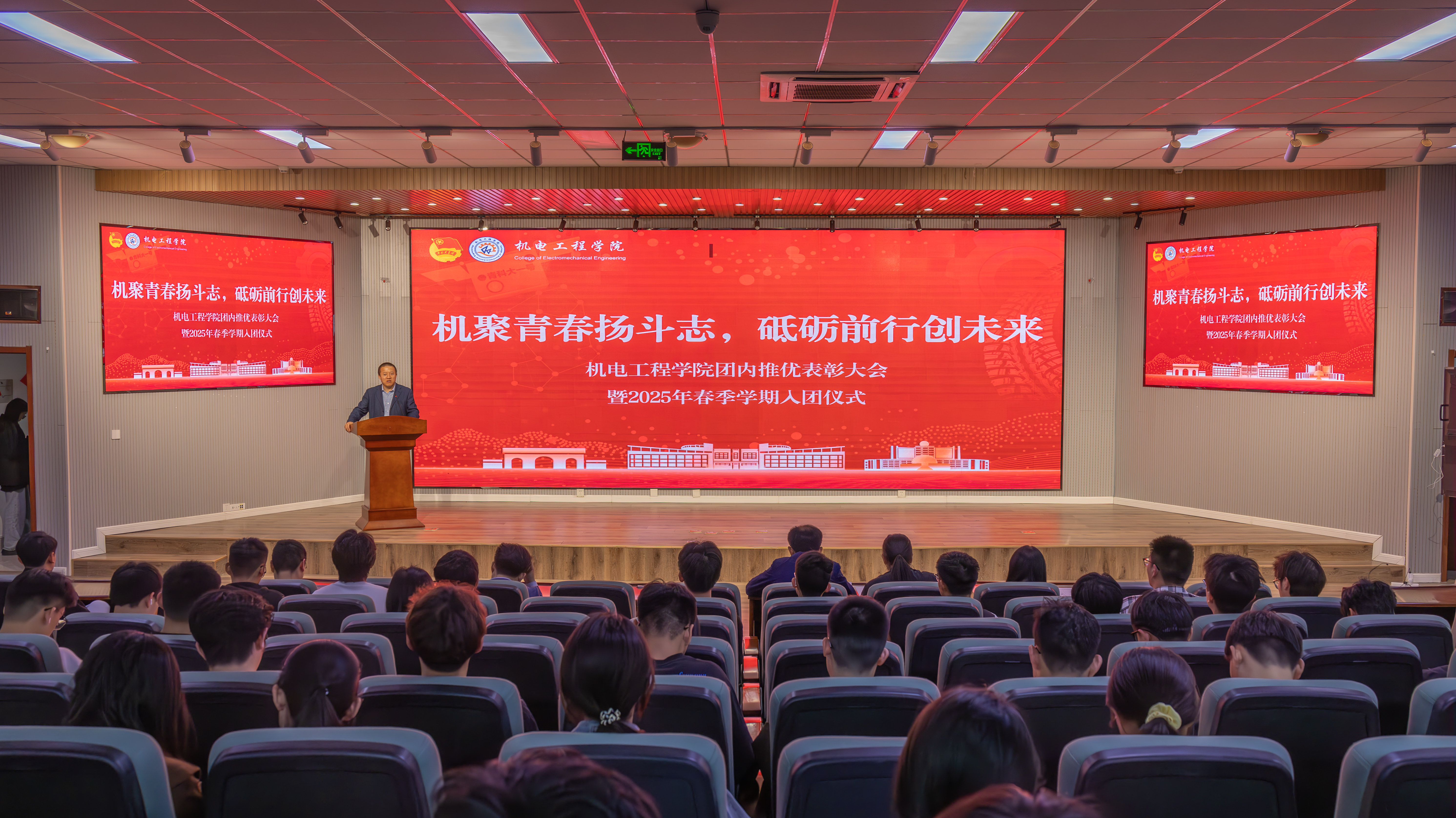 为深入学习贯彻习近平新时代中国特色社会主义思想、党的二十大精神和党的二十届三中全会精神,进一步加强青年思想引领,激励青年学子勇担使命,5月13日,机电工程学院隆重举办“机聚青春扬斗志砥砺前行向未来”团内推优表彰大会暨2025年春季学期入团仪式。学院党委副书记兼副院长杨小明、团委全体专兼职团干部出席会议,2025年春季新发展团员、入团积极分子以及学生代表参与会议。