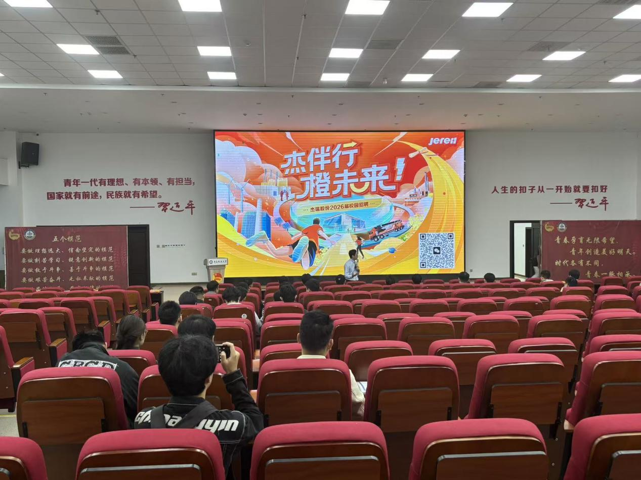 宣讲会上,杰瑞集团人事赵新宇全面介绍了集团的发展历程、产业布局与企业愿景。作为一家专注于高端装备制造与能源工程技术服务的国际化企业,杰瑞集团业务涵盖油气工程与技术服务、油气田开发、新能源、环境治理等多个领域。赵新宇强调,集团始终坚持以技术创新为驱动,致力于为能源行业提供智能化、绿色化的解决方案,近年来在油气装备、新能源及再生循环等领域取得重要突破,展现了强劲的发展潜力与创新能力。集团不仅为员工提供富有竞争力的薪酬福利和完善的培训体系,更致力于打造广阔的职业发展平台,鼓励青年人才在实践中成长、在创新中突破。