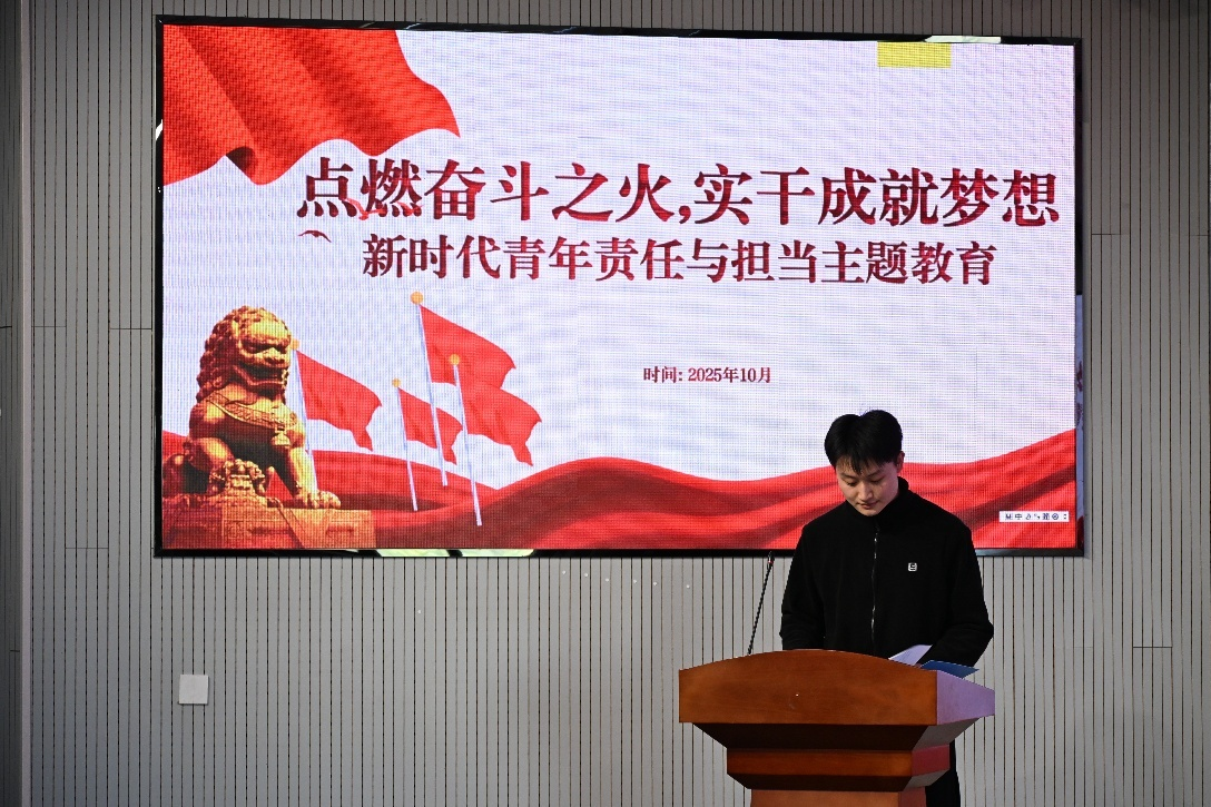 分享会上,学院第四党支部副书记王成才同学首先以“点燃奋斗之火,实干成就梦想”为题,结合其服务师生、组织协调多项活动的实践经历,深刻阐述了新时代青年的责任内涵。他指出,坚定的信仰并非空中楼阁,而是扎根于每一次挺身而出、每一次尽职尽责的具体行动中。