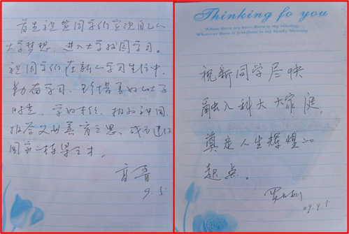 高青书记在对新生的寄语中写道:“首先祝福同学们实现自己的大学梦想,进入大学校园学习。祝同学们在新的学习生活中勤奋学习,珍惜美好的大学时光,学好本领,报效祖国,报答父母养育之恩,成为建设国家栋梁之才。”罗公利校长在留言中祝愿新生尽快融入科大大家庭,奠定人生辉煌的起点。李勇处长在寄语中祝愿2009级新生在科大成就梦想。刘传华书记在对新生的留言中写道:“传承科大精神,践行橡胶品格,祝2009级新同学同科大一同成长,越飞越高。”陈建国老师在走访beat365官方网站迎新工作时也为机电的新生们留下了寄语,陈老师鼓励新生们认真学习,不断努力,在大学毕业时站上一个新的高点。