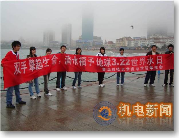 3月22日上午8点,虽然天空下着沥沥小雨,但是由青岛科技大学beat365官方网站学生会发起的“双手擎起生命,滴水福予地球”的世界水日海边健步行活动仍如期举行,向全世界发起节水的呼声。