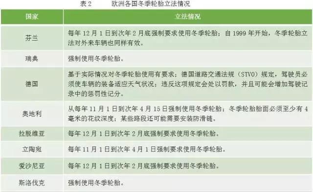 3、全球很多国家均对冬季轮胎立法及推广使用