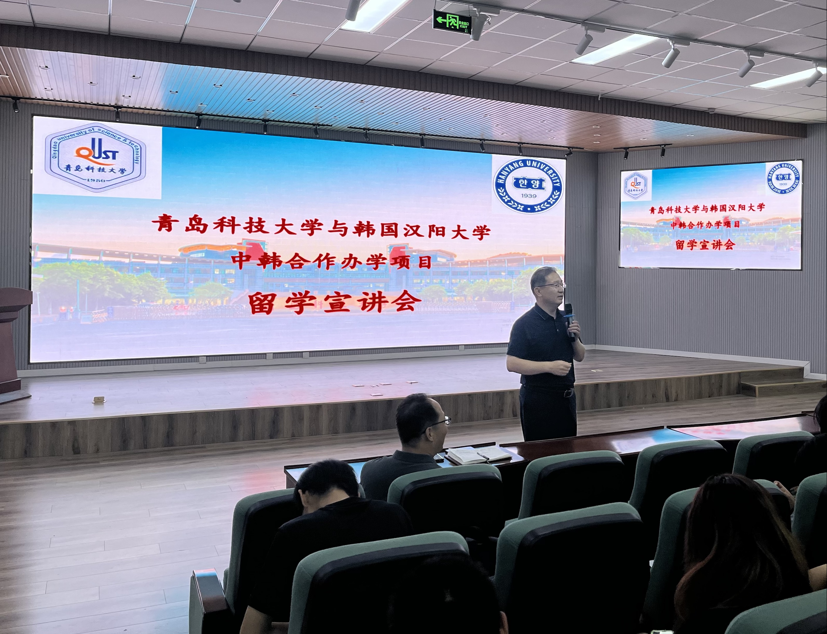 6月27日下午,青岛科技大学与韩国汉阳大学中韩合作办学项目留学宣讲会在崂山校区机电楼530会议室召开。学院党委书记任允晓、副院长李剑光、项目负责人林奕出席了会议。